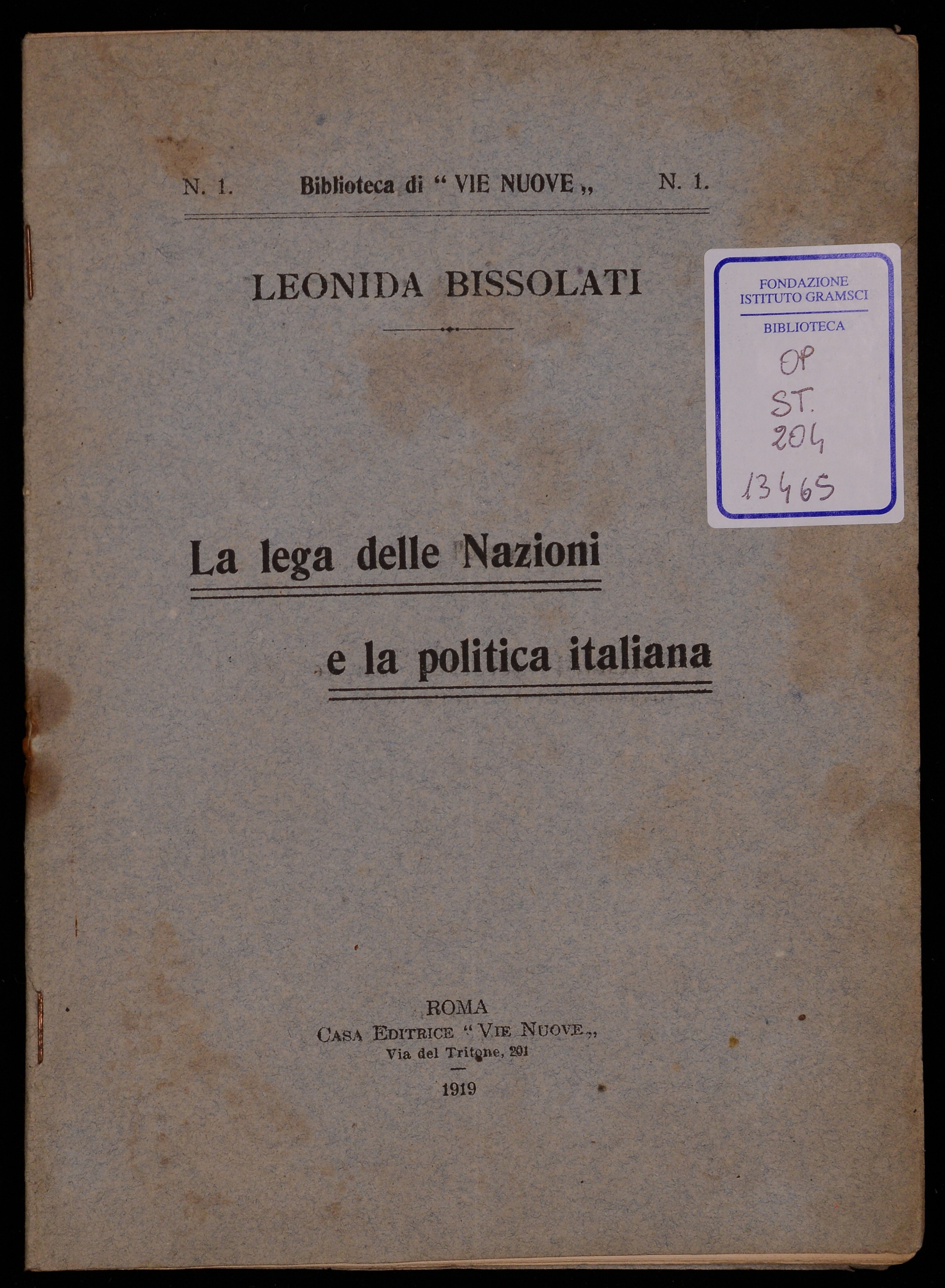 Roma : Vie nuove, 1919. - 29 p. ; 22 cm.